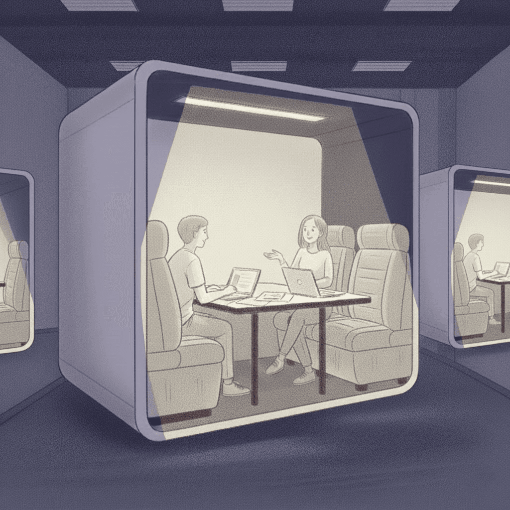 Unsere Focus Boxen bieten Rückzugsorte für konzentriertes Arbeiten. Schallisoliert und ruhig eignen sie sich ideal für Telefonate, Online-Meetings oder fokussierte Einzelarbeit – wahlweise für eine Person oder für kleine Meetings mit bis zu drei Personen.
